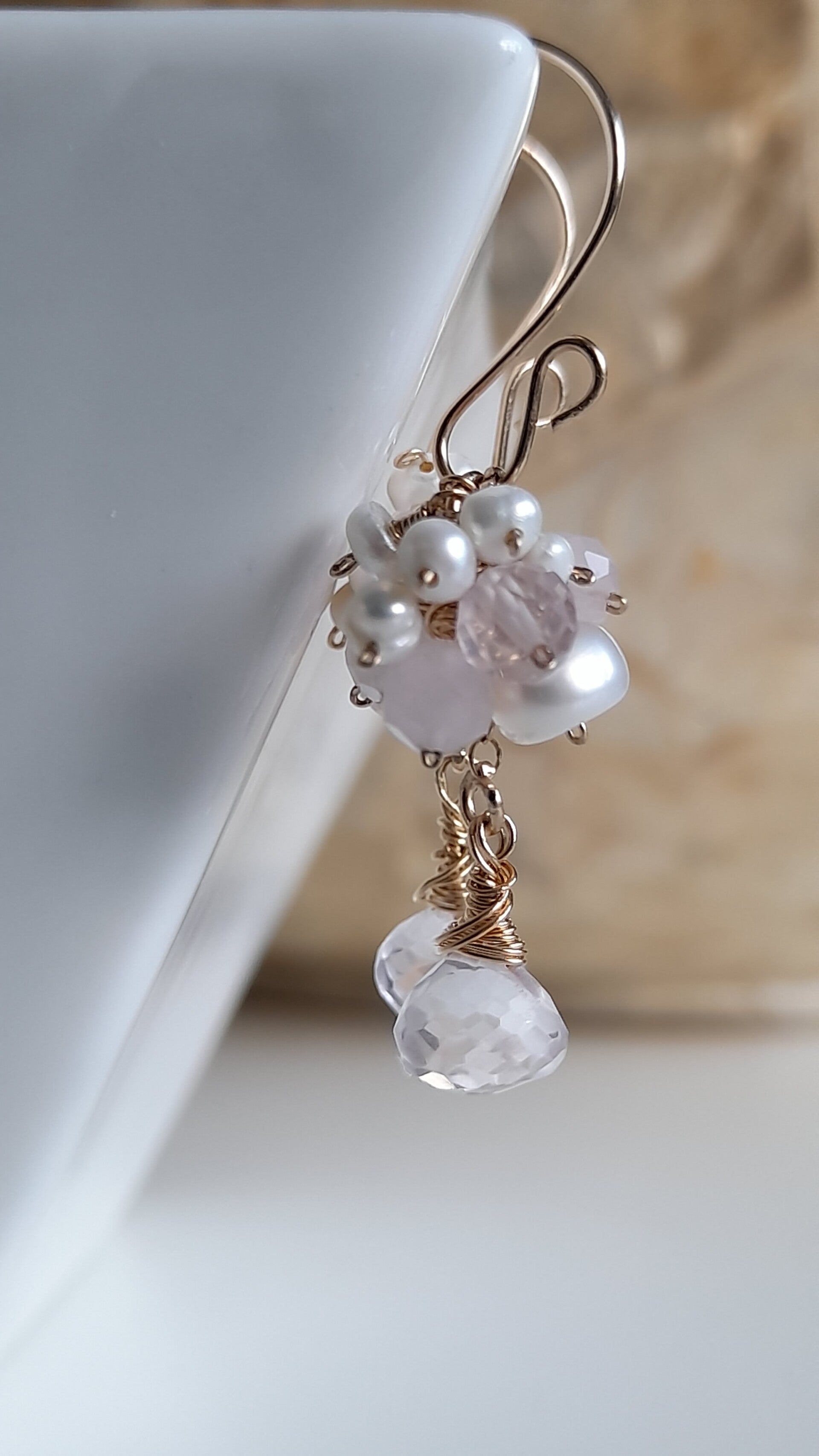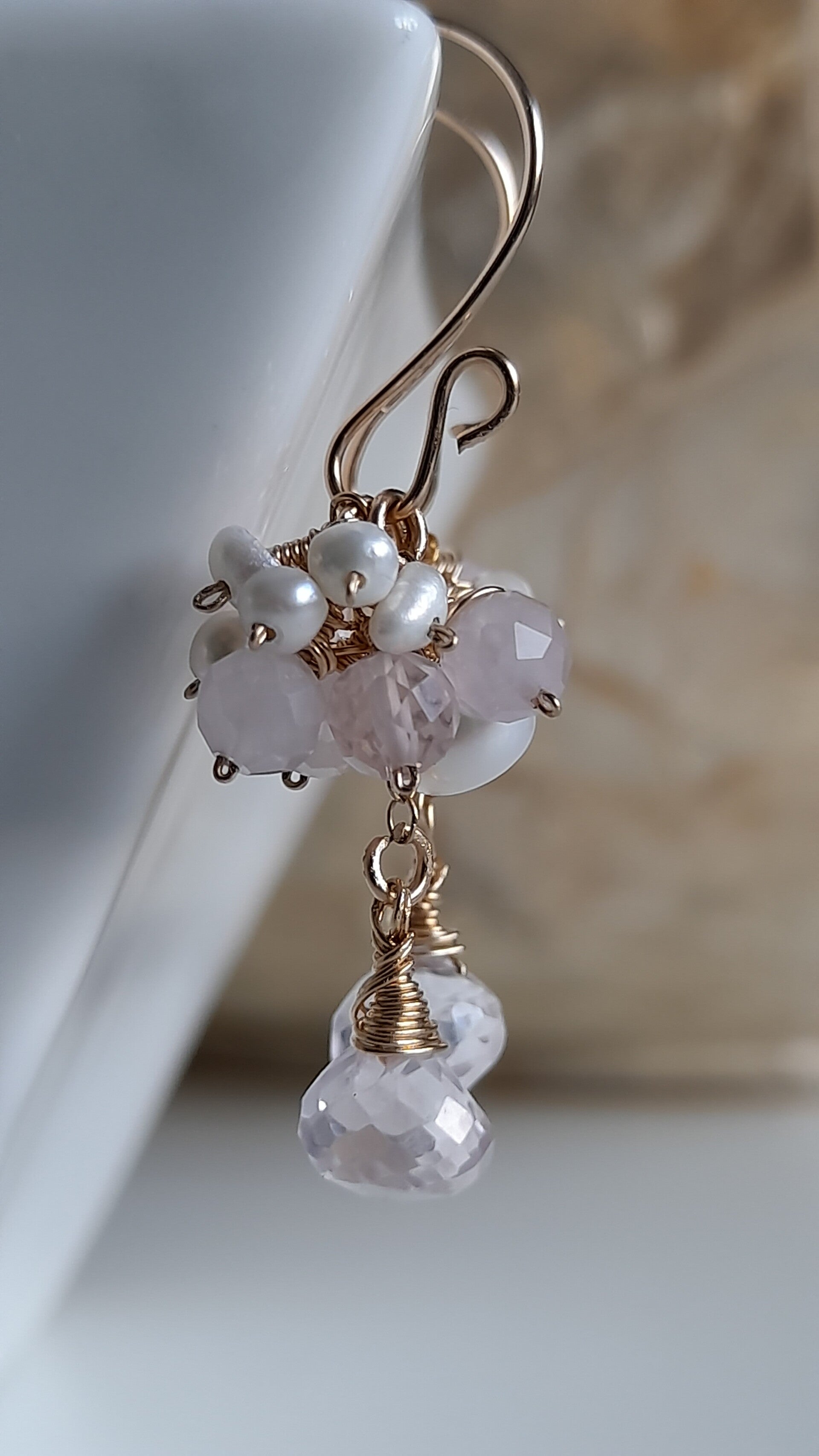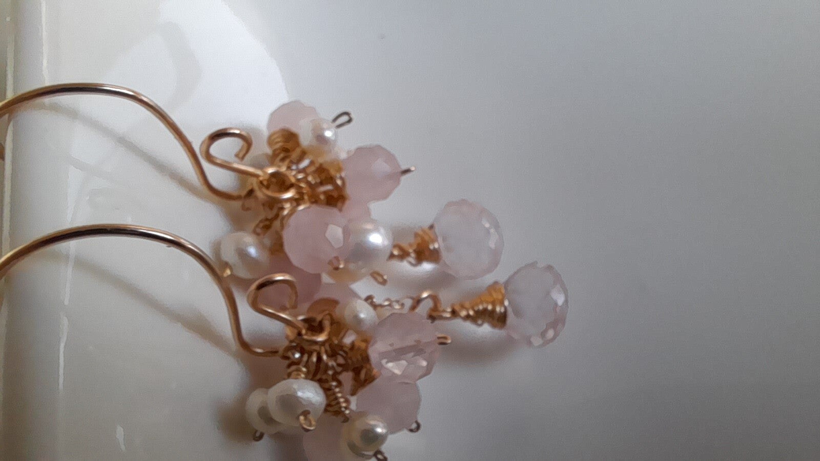Rose Quartz & Pearl 14ct Gold Filled Earrings Handmade in Ireland FREE DELIVERY 🇮🇪 🇬🇧 🇪🇺