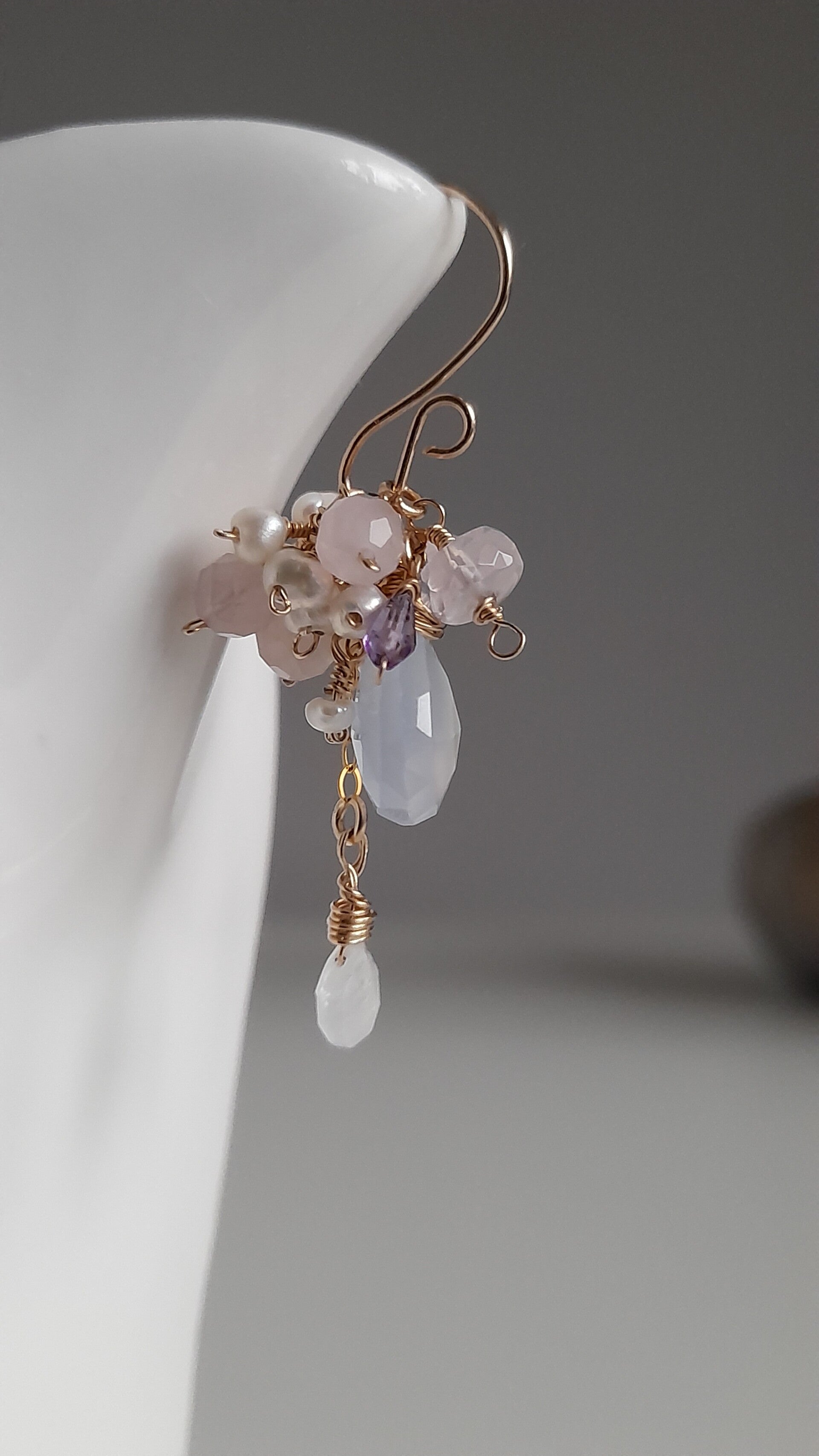 Crystals include Holly Blue Chalcedony, Rose Quartz, Lavender Quartz, Rainbow Moonstone, Amethyst Crystals & Pearls