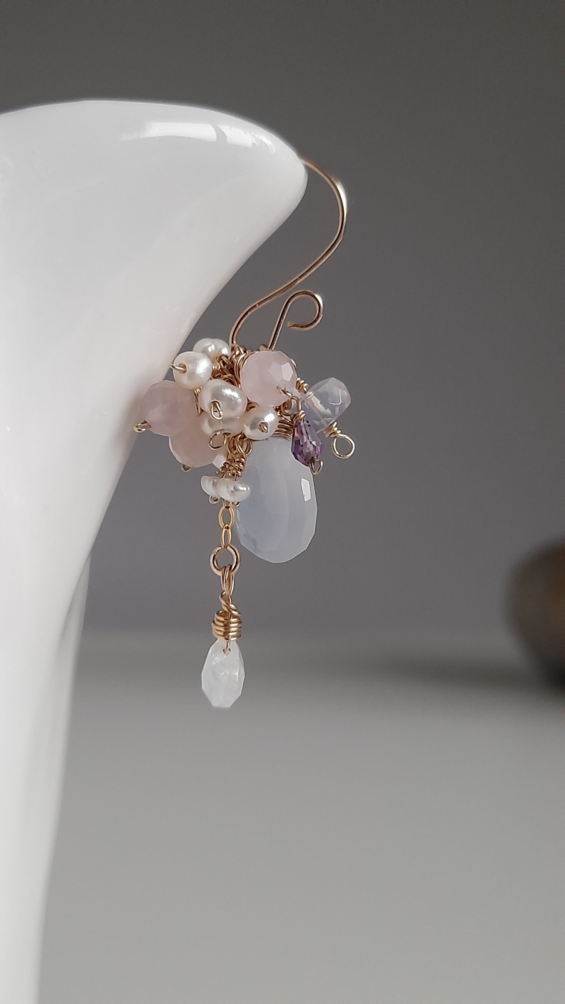 Holly Blue Chalcedony with a Cascade of Crystals perfect Easter/Festive & Bridal/Wedding Jewelry FREE DELIVERY 🇮🇪 🇬🇧 🇪🇺