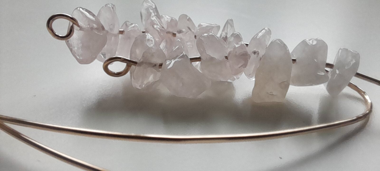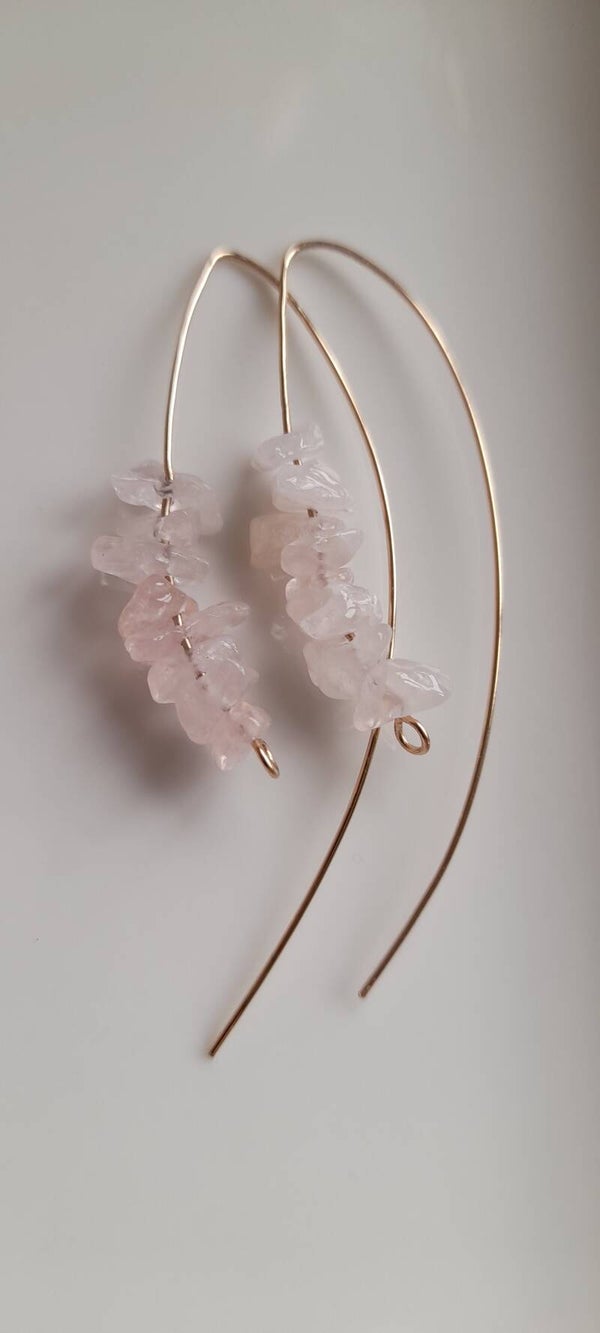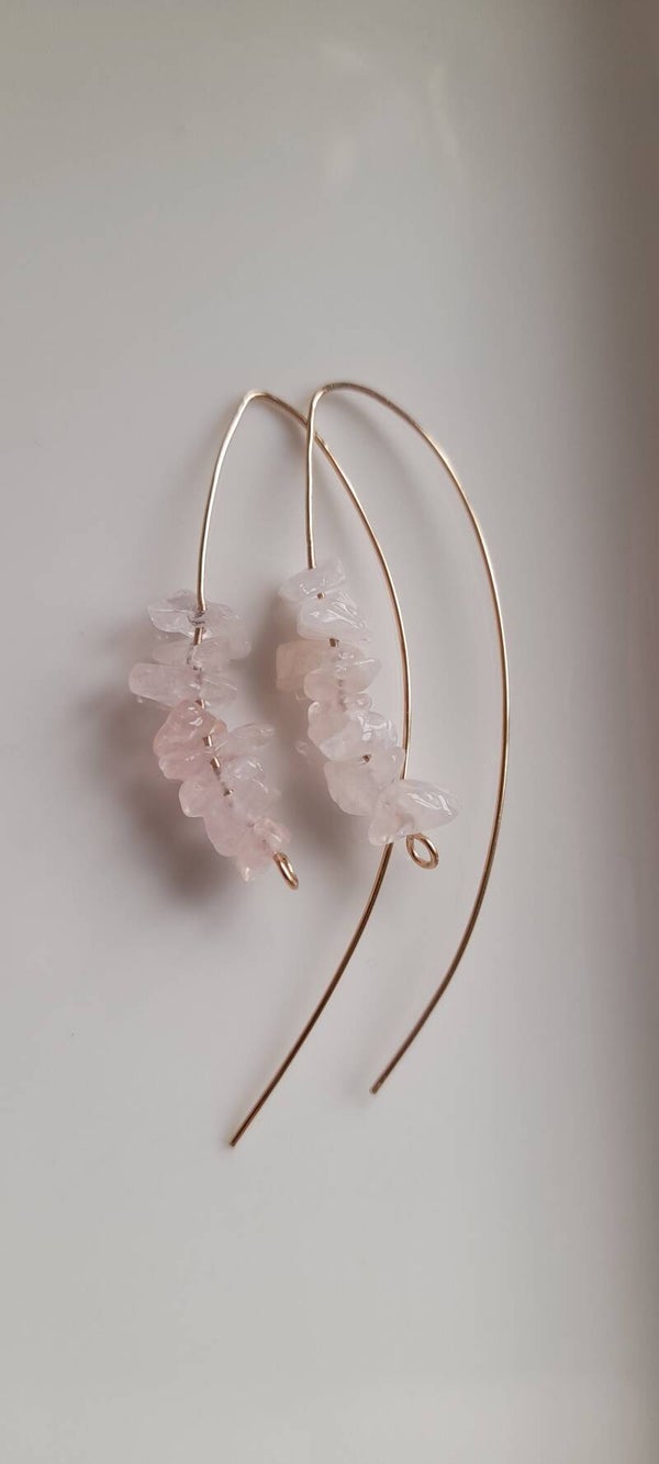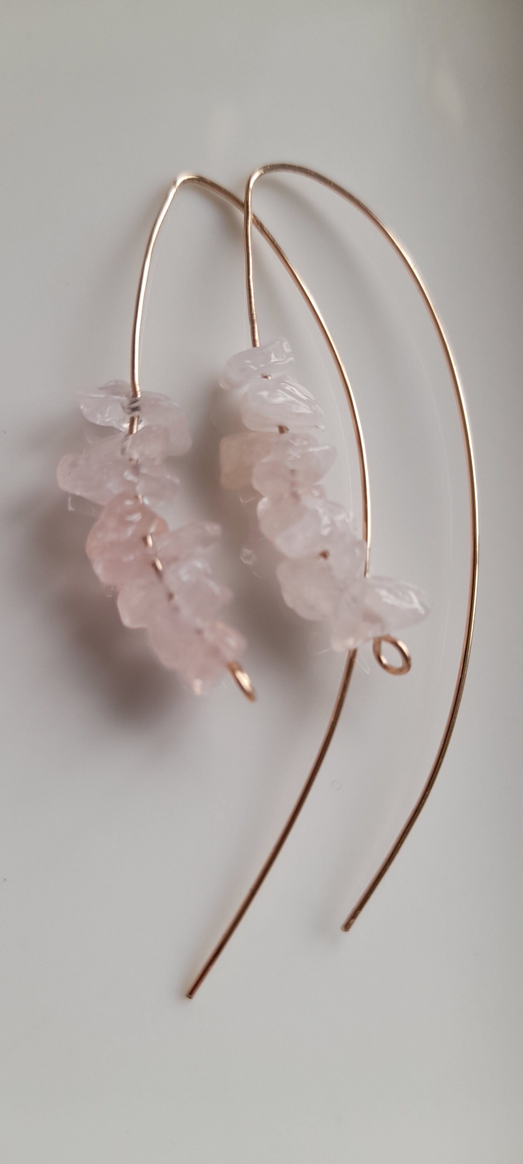 AAA Rose Quartz Raw Nugget 14ct Gold Filled V Earrings