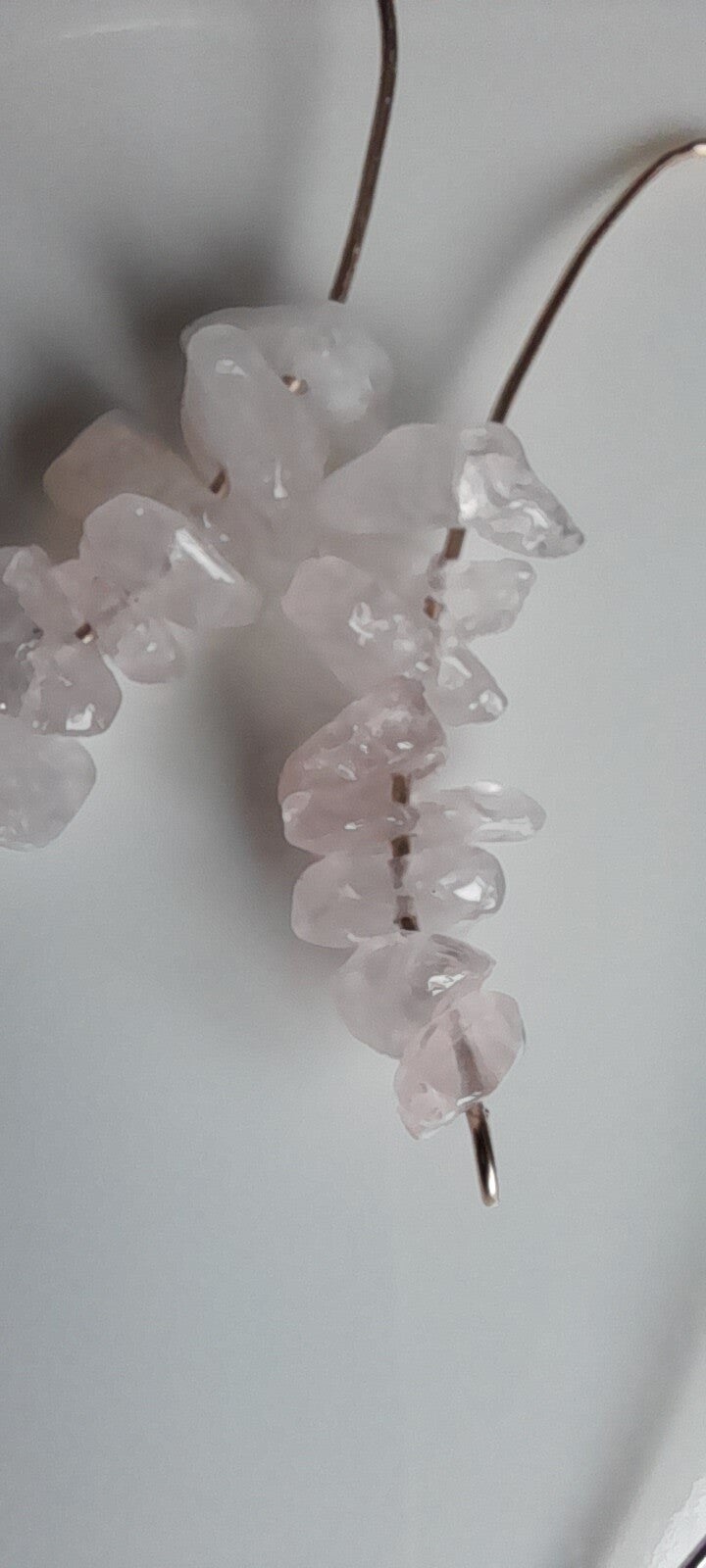 Glistening Raw Nuggets of AAA Rose Quartz on 14ct Gold Filled Statement V Earrings