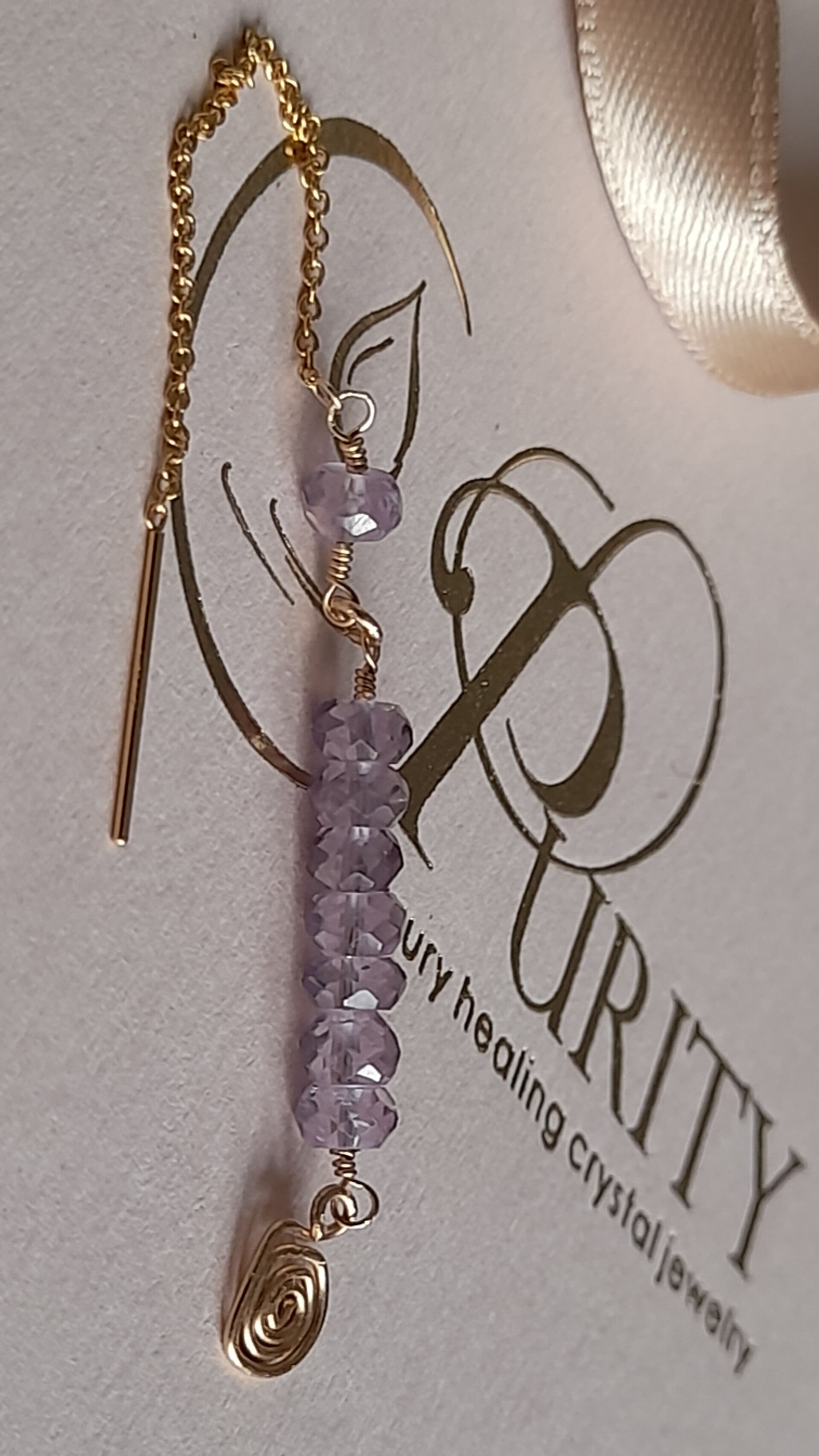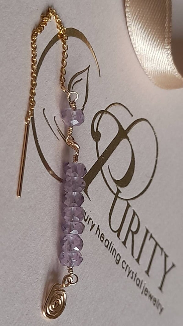 CLEANSE Body, Mind & Aura with Amethyst ... .... this Amazing Crystal gets an up-to-the-minute look with Ear Threaders ... attributes detailed on puritycrystal.com